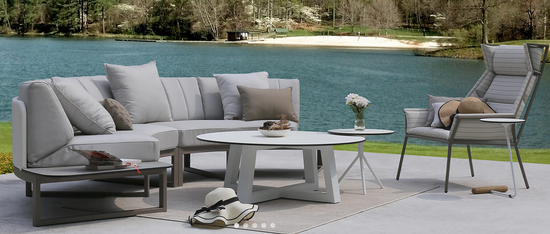 BABBO Lounge Set is as easy as one, two and three! Both left and right hand curved sectional pieces have generous, soft cornered, built in HPL side tables which are available in four colors. Add the sectional curved middle piece in between to create an expansive eight seater lounge set.
